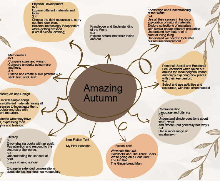 Below, our Curriculum map shows how we will develop our skills and knowledge across the areas of the EYFS. Our second half term will be focusing on our topics 'Amazing Autumn' and 'It's Christmas'