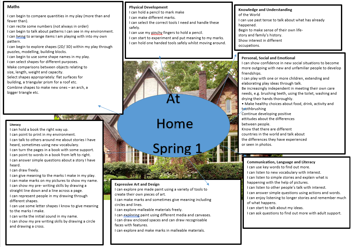 Below, our curriculum map shows how we will develop our skills and knowledge across the areas of the EYFS. Our first half-term will be focusing on our Topic of 'Homes'